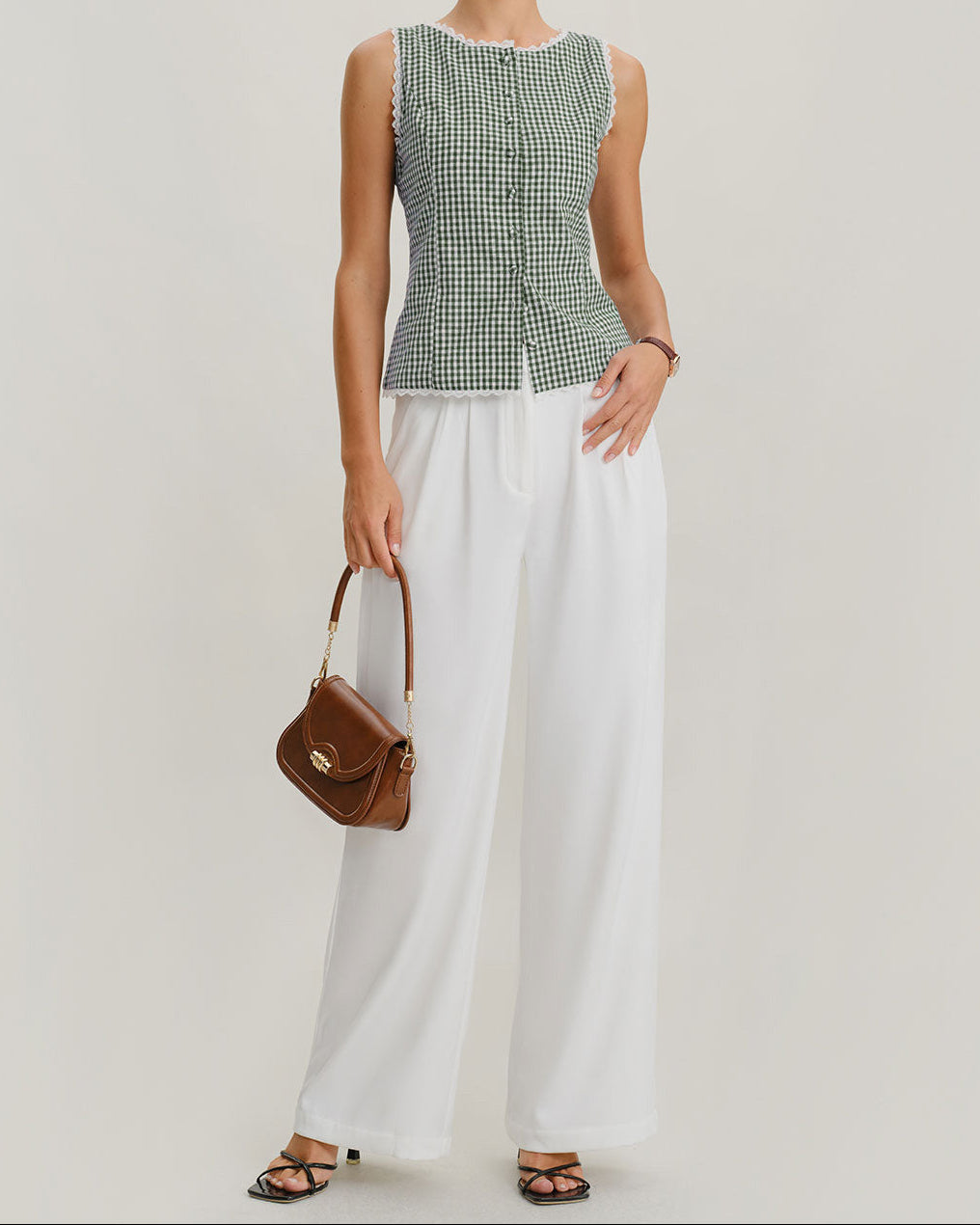Débardeur à carreaux vert à col bateau